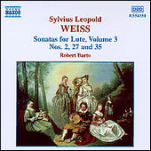 Sonatas Nos. 5, 25, 50. Barto.Silvius Leopold Weiss: Lute Sonata No. 5 in G major: 1. I. Prelude, 2. II. Allemande, 3. III. Courante, 4. IV. Bourrée, 5. V. Sarabande, 6. VI. Menuet, 7. VII. Gigue. Lute Sonata No. 25 in G minor: 8. I. Prelude, 9. II. Allemande andante, 10. III. Passepied, 11. IV. Bourrée, 12. V. Sarabande, 13. VI. Menuet, 14. VII. Gigue. Lute Sonata No. 50 in B flat major: 15. I. Introduzzione, 16. II. Courante, 17. III. Bourrée, 18. IV. Sarabande, 19. V. Menuet, 20. VI. Presto.