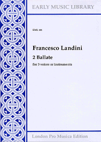 (Gram piant´agli occhi and Charo singnor) for 3 voices or instruments.Francesco Landini (1325-1397) was the leading light in Florentine music of the 14th century: he was especially valued as an organist. Over 150 pieces of his have survived, 90 of which are ballate. He was a poet as well as a musician, and may have composed many of his own texts.The two pieces here are printed after the Squarcialupi Codex (Florence, Biblioteca Medicea-Laurenziana, MS 87). Note values have been quartered. Editorial accidentals appear above the stave, applying to one note only. I am grateful to Alan Robson for editing and translating the texts of these songs.There is considerable disagreement about the role of instruments in 14th-century music, some scholars even asserting that they were not normally used together with voices. It is perfectly possible to perform there pieces purely vocally, but this requires a high standard of singing. For most performances today a mixture of voice(s) and instruments will be found to be more comfortable: in Gram piant´ agli occhi the superius and tenor may be sung, with the contratenor played on a plucked or bowed string instrument. If only one part is to be sung, it should be the top one. There is every justification for performing these pieces on instruments alone, either recorders, viols, or a mixture of wind and strings. In any performance it is important to grasp that the contratenor, however strange it may seem at first, still has a real melody line, i.e. the cross-rhythms need not sound jerky.