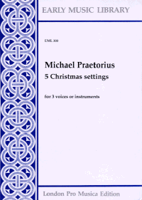 for 3 voices or instruments.These Christmas chorale settings come from Michael Praetorius´ Musae Sioniae Neundter Theil: Deutscher Geistlicher in Kirchen und Häusern gebreuchlicher Psalmen und Lieder mit 2. und 3 Stimmen/auff Muteten, Madrigalische und sonsten nach eine andere vom Autore erst erfundene Art, 1609. Unlike the 4-part Christmas pieces already published in this series (EML 248), these are sophisticated and highly varied settings, with a degree of imitation, and, in some cases. frequent changes of meter: indeed Praetorius´ claim to have developed a new way of treating chorales has some justification. The majority of the pieces selected here are scored for two high voices and a tenor or bass at least an octave lower - a very Italianate disposition of the parts.In this edition the original note values have been retained in the duple sections, but halved in the triple sections (however, in no. 5 the note values have been quartered). The proportional relationships are a little problematic at times: in In dulci jubilo the composer may have intended a 4:1 rather than 3:1 relationship (constant crotchet/ quarter note) in the transcription, as identical phrases occur in both meters. In no. 4, which incorporates several verses of the text, the composer is consistent in specifying a major third at the end of verse, but other G chords ocurring within a verse are left minor.