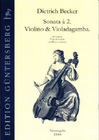 für Violino und Violadagamba aus 'Erster Theil zweystimmiger Sonaten und Suiten', Hamburg 1674, für Violine, Viola da gamba und Bc., als Neuausgabe und als Faksimile herausgegeben von Leonore und Günter von Zadow. Dietrich Becker war einer der bekanntesten Geiger Norddeutschlands in der zweiten Hälfte des 17. Jahrhunderts. Seine Kompositionen stehen in der Tradition der Instrumentalwerke von Weckmann, Reincken und Buxtehude. Sie zeigen aber einen deutlicheren Einfluß italienischer Kompositionsart als diese. Neuausgabe, Generalbaßaussetzung von Dankwart von Zadow.