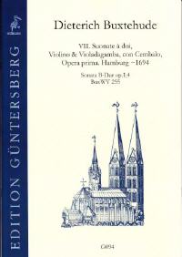 Violino & Violadagamba, con Cembalo, Opera prima, Hamburg ~1694, Sonata B-Dur op 1,4, BuxWV 255.Diese Triosonaten op. 1 waren bereits zu Buxtehudes Lebzeiten berühmt, sind heute jedoch viel zu wenig bekannt. Neuausgabe, die heutigen Ansprüchen an die Werktreue gerecht wird.