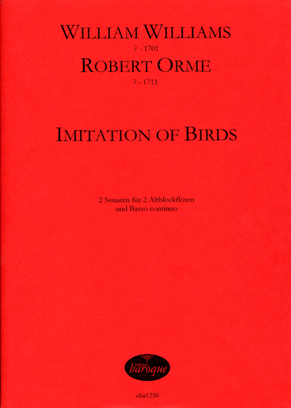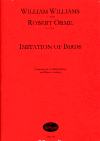 in Imitation of Birds & The Imitation of several Birds, zwei Triosonten in F-dur für 2 Altblockflöten und Bc.Für die Ornithologen unter den Blockflötisten: Neben der schon bekannten Sonate von Williams nun auch die zum ersten Mal veröffentlichte Sonate von Robert Orme.
