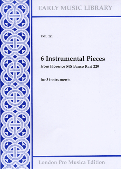 from Florence MS Banco Rari for 3 instruments.These six pieces have survived in a single source, MS Banco Rari (formerly Magl. XIX 59) of the Biblioteca Nazionale Centrale in Florence. This manuscript, written in the workshop of the di Giovanni brothers of Florence in the 1490s, is a very large collection of (mostly) secular pieces, predominantly by composers from Northern Europe. As many of the pieces without texts turn out to be chansons found texted in other sources, there is always a little doubt whether pieces such as these six are truly instrumental. There are, however, some suggestive features, such as very abstract treatment of short phrases, and pauses in unusual places. Also, in at least three cases there appear to be echoes of that seminal instrumental number, Martini´s La Martinella, which is also found in the same Florentine collection, together with three other similarly titled numbers. No. 1 here shares an identical opening phrase with the Martini piece, while the opening phrase of the second half of no. 2 resembles that of La Martinella; in no. 6 there are no direct quotes, but there is a certain similarity of style and melodic contour.All but one of these pieces (no. 5) appear in a group towards the end of the Florence MS (f.260v-267), which perhaps adds some plausibility to the notion of a family of instrumental pieces. The odd one out, found earlier in the manuscript (f. 93v) is not only in a different mode, but shorter and less abstract: while the lines are rather ornate in a way which may seem to us instrumental, it could well be a chanson of the type cultivated by Agricola; whatever its origins it does, like many of the other pieces in the collection, make an effective instrumental piece. Of the set of five, no.4 here experiments with, for its time, some remarkably short phrases. In this edition the original note values have been halved throughout. Editorial accidentals appear in the usual way above the stave, applying to the one note only, while original accidentals, printed on the stave, are taken as applying to the whole bar until contradicted.At the time when the Florence manuscript was written, players of loud wind instruments (shawms, sackbuts, cornetti) would have been used to transposing such music up a fifth. It is also possible that recorder players would have done the same, as it is only in the sixteenth century that we find references to bass recorders. With this in mind we have provided an alternative version of these pieces at the higher pitch (see below).A version of these pieces a transposed up a fifth, suitable for Renaissance wind instruments, is available as EML 281a