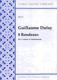 for 3 voices or instruments.It is difficult to write of the music of Dufay without falling into superlatives, so much does it transcend the conventions of his age. Certainly his secular pieces show a striking originality at times: Donnés l´assault, for instance, include his favourite trick of deliberately alternative E flats and E naturals, as well as his use of triadic figures at the end.Ideas about performing Dufay´s songs have changed over the last decade or so; the conventional wisdom today is that they were normally performed either by singers or instruments, rather than by mixed forces. However, there is not a great deal of evidence either way; for this reason we have underlaid only those parts that are fully underlaid in the sources. Performers should be encouraged to experiment with different approaches to this music. It is important to know that the contratenor is of less importance than the discantus and tenor, and can be omitted if necessary; indeed, a good way to approach this music is to do it in two parts first, and only add the contra when the main parts are properly balanced.In this edition editorial accidentals appear in the usual way, printed small above the stave, applying to the one note only. The original note values have been halved in most cases, but quartered in nos. 1 and 8. I am grateful to Jeannine Alton for translating the poems of this songs.