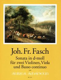 für zwei Violinen, Viola und Bc., hg. Morgan, Partitur und Stimmen.Als überragender Kontrapunktiker erweist sich Fasch in seinen Instrumentalstücken, die zwar dem Barock verhaftet, in ihrem Wesen als Übergangswerke, und ohne die polyphone Satzweise preiszugeben, den Musizierstil der frühklassischen erahnen lassen.