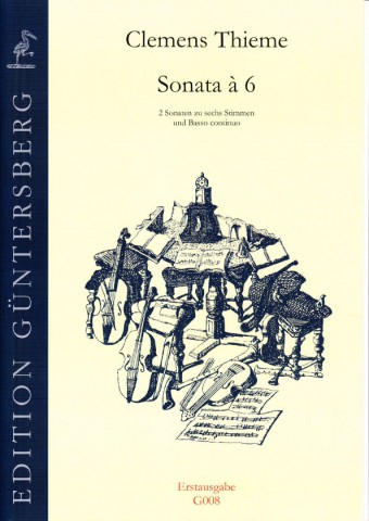 2 Sonaten zu sechs Stimmen und Bc., hg. von L. und G. von Zadow, Erstausgabe.Der deutsche Komponist und Instrumentalist Clemens Thieme wirkte in den Hofkapellen von Dresden und Zeitz. Seine Sonaten, die dem Stil Rosenmüllers verpflichtet sind, alternieren zwischen lebhafter Homophonie und fugenartigen Episoden. Die Sonaten, die hier erstmalig veröffentlicht sind, sind für Gamben und/oder Instrumente der Violinfamilie gedacht, können aber auch auf Blasinstrumenten gespielt werden. Die Mittelstimmen sind im Alt- und (oktavierten) Violinschlüssel notiert. Die Partitur enthält auch die Generalbassstimme mit Bezifferung, so dass das Consort auch von einem Akkordinstrument begleitet werden kann.