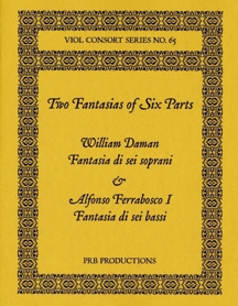 one for six trebles (W. Daman) and one for six basses (Alphonso Ferrabosco I), ed. Brookes, score and parts.A tenor transposition for each fantasia is included.
