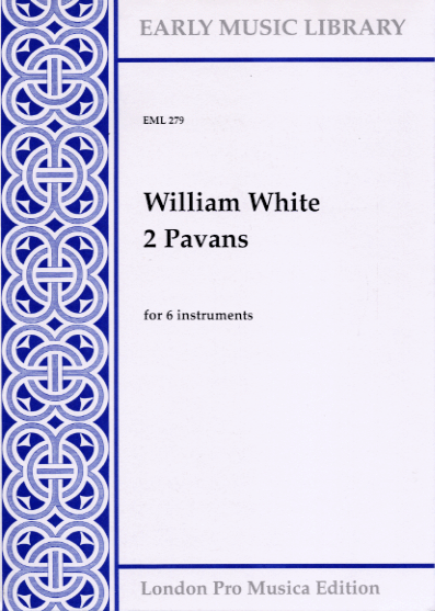 for 6 instruments.Little is known about William White, sometimes known in the sources as William White of Durham. He was born before 1585 and is mentioned as a (presumably relatively recently) deceased composer of fantasies in Simpson´s Compendium of Practical Musick of 1667. Around 14 instrumental pieces by him of survived, many of which are of very high quality, as are the two 6-part pavans printed here.This transcription basically follows Oxford, Christ Church Library MSS 423-8, with a few accidentals taken from British Library, Add. MSS 17792-6 and 39550-4. The original note values have been retained. Editorial accidentals are shown in the usual way, printed small above the stave, applaying to the one note only.