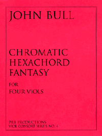 for four viols (tTTB).Walker Cunningham has provided a "re-transcription" of Bull's hexachord fantasy (No. 50 in the Fitzwilliam Virginal Book) for four viols (treble or tenor; treble, alto or tenor; and two basses). The hexachord is repeated in all 12 transpositions, similar to the hexachord fantasias of Ferrabosco.