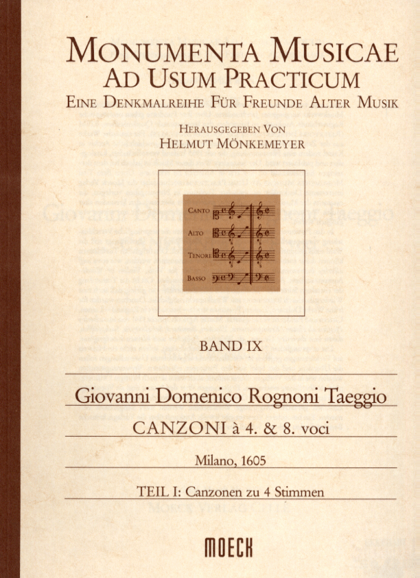 à 4. & 8. voci, Milano 1605, Teil I: Canzonen zu vier Stimmen (Blockflöten SATB), Spielpartitur, hg. Mönkemeyer.Inhalt: La Lombarda; La Gallia; L´Albertina; L´Arlune; L´Homodea; La Capitania Lombarda; La Biffa; La Galarana; La Niguarda; La Cingarda; La Riua; La Mazza; La Rigamonta; La Biuma; La Sfondrata di Gaspar Costa; L´Aureliana; La Basgapera. Schwierigkeitsgrad 3.