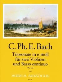 Wq 155 für 2 Violinen und Bc., hg. Päuler, Partitur und Stimmen.Das wenig bekannte, lange Zeit vergriffene e-moll-Trio steht einmal mehr für die überragende spielfreudige Stilsicherheit in der Ausformung des kleinsten Details.