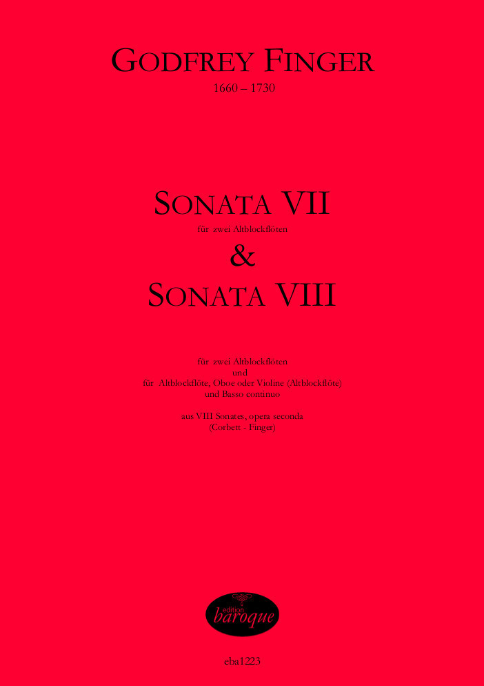 Sonata VII für zwei Altblockflöten & Bc., Sonata VIII für Altblockflöte, Oboe oder Violine (Altblockflöte) & Bc.Abwechslungsreiche und farbige Musik im mittleren Schwierigkeitsbereich.