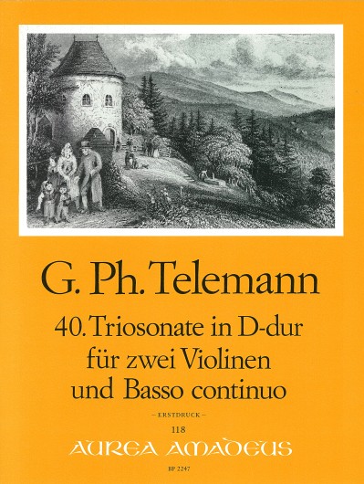 40. Triosonate in D-dur TWV 42:D12 für 2 Violinen und Bc., Erstdruck, hg. Päuler, Partitur und Stimmen.