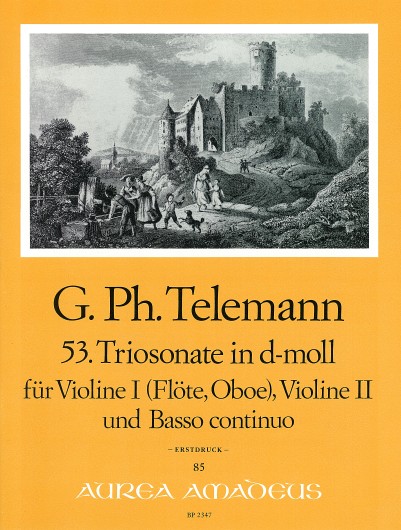 TWV 42:d8 für 2 Violinen und Bc., Erstdruck, hg. Päuler, Partitur und Stimmen.Movements: Con affetto - Allegro - Grave - Vivace