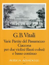 del Passamezzo op. 7/1 und Ciacona op. 7/3 (1682) für 2 Violinen (Blockflöten, Oboen) und Bc., hg. Michel, Partitur und Stimmen.