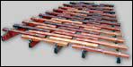 Hier finden Sie neben einer Strofidel (einem Xylophon, dessen Klangplatten ursprünglich auf Strohwalzen lagen)und einem Glockenspiel noch verschiedene Rhythmusinstrumente wie Fingercymbeln, Kastagnetten und Ratsche. |