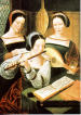 François Puget (1651-1707): Portaits de plusieurs musiciens et artistes du siècle de Louis XIV; Edgar Degas (1834-1917): L´Orchestre à L´Opéra; Sir Joshua Reynolds (1723-1792): Mrs. James Paine and her daughters; Jan Miense Molenaer (1610-1668): Das Duett; Meister der weiblichen Halbfiguren (um 1520): Drei musizierende Mädchen; Les Frères Le Nain: Der Tanz der Kinder (1643).