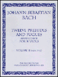 from the Well-Tempered Clavier Vol. II, arr. for four viols, score and parts.Preludes: WTC I: 12, 16, 18, 22; II: 9, 16. Fugues: I: 14, 16, 17; II: 5, 22. For various quartet combinations, mostly tTTB or ttTB.