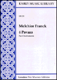 These four pavans come from Melchior Franck´s Newer Pavanen Galliarden unnd Intraden, auff allerley Instrumenten zu musicieren, mit vier fünff und sechs Stimmen gesetzt, Coburg, 1603. Unfortunately, as is the case with so many Franck collections, the only surviving copy of this print was lost in the 1939-45 war, so I have had to follow Franz Bölsche´s apparently reliable transcription in Denkmäler Deutscher Tonkunst, Erste Folge, XVI: Melchior Franck und Valentin Haussmann, Ausgewählte Instrumentalwerke, 1904, in which the original note values were retained. In these pieces Franck does not preserve a single solemn mood throughout, but instead presents a series of strongly-contrasting sections, as he does indeed in his wonderful six-part intradas (see LPM TM40 and TM54). The composer probably had stringed instruments mainly in mind as his first choice, but these rich and colourful works can also sound very fine on consorts of wind instruments such as cornetts, curtals and sackbuts, as well as recorders or flutes.