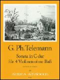 TWV 40:203 für 4 Violinen ohne Bass, hg. Morgan, Partitur und Stimmen. Neben den Einzelausgaben in Partitur und Stimmen erschien gleichzeitig eine reine Stimmenausgabe (AMA-BP0434) aller 3 Konzerte in einem Heft. Sie eignet sich besonders als preiswerte Ergänzung für chorisches Spiel.