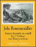 für 2 Violinen und Bc., hg. Morgan, Partitur und Stimmen.Die Sonata ist Teil der 10 Sonaten-Sammlung für 2 bis 5 Streichinstrumente, ist mehrsätzig konzipiert und überrascht durch kühnes Experimentieren mit der Form und der Harmonik.